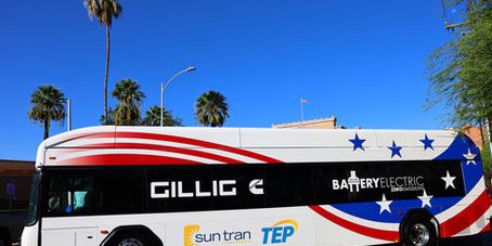 Tucson, Ariz.’s Sun Tran introduced its first electric bus into service on Sunday. The GILLIG electric bus is powered only by battery and produces zero-emissions, contributing to cleaner and healthier air in Tucson. Utilizing advanced technology, the electric bus provides a quieter and comfortable ride for passengers.